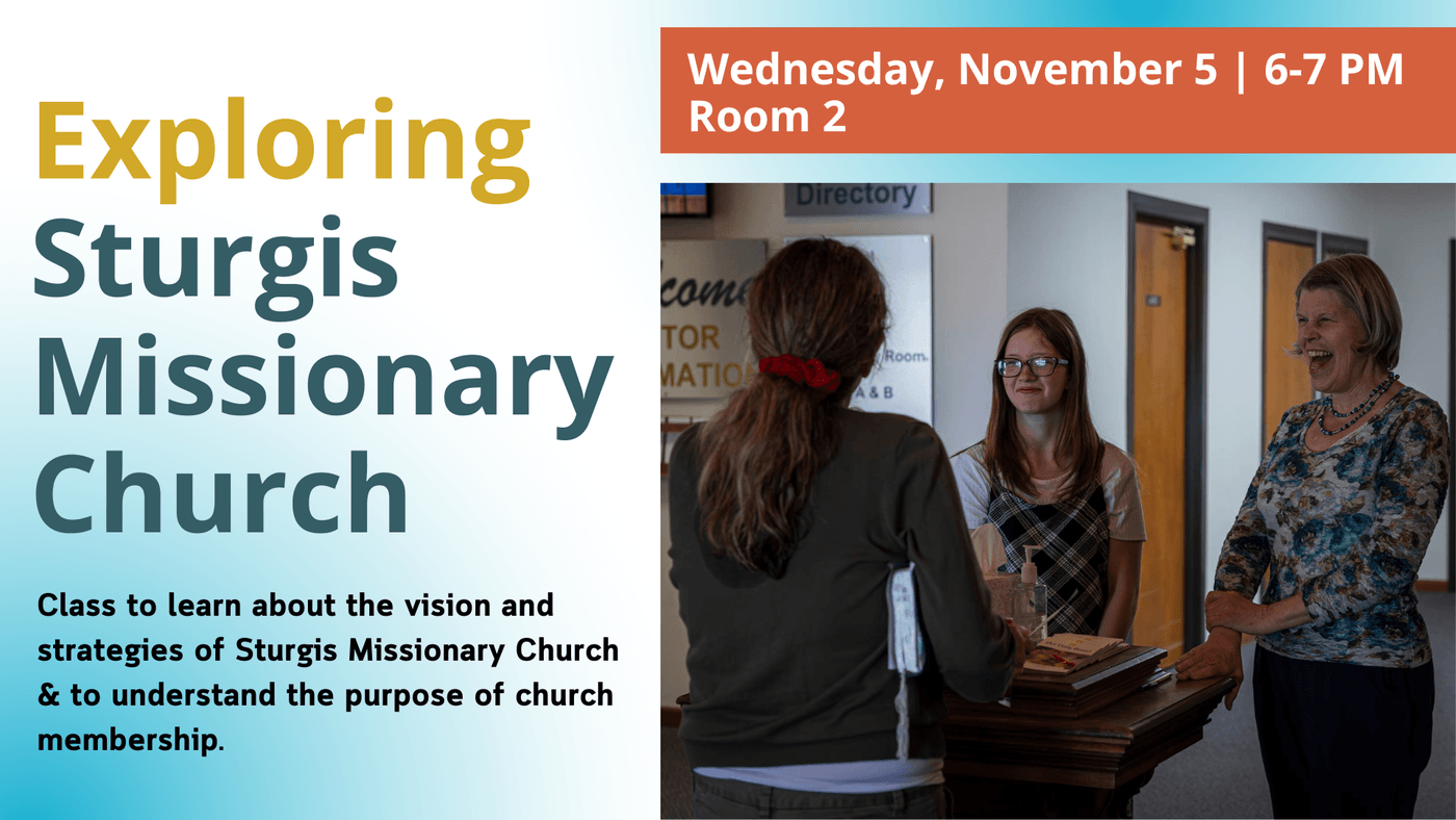 Exploring SMC - 1-hour class to learn about the vision and strategies of Sturgis Missionary Church.