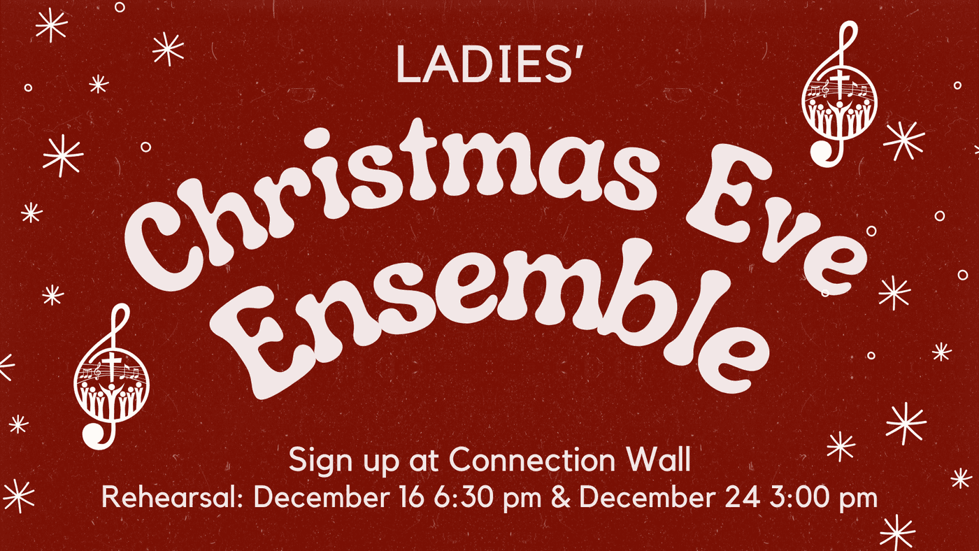 - December 16 @ 6:30 pm - SMC Women's Christmas Ensemble Practice - The women's ensemble choir will perform special music "I Heard the Bells on Christmas Day" at our Christmas Eve Service. Our first practice will be on December 16th at 6:30 p.m. in the Sanctuary. Please sign up for the women's ensemble at the Connection Hub wall.